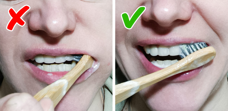 A técnica correta é importante porque, se você estiver escovando com movimentos de vai e vem como se estivesse esfregando, pode correr o risco de sofrer retração gengival e desgaste dentário. É melhor posicionar a escova sobre os dentes e então incliná-la um pouco, formando um ângulo de 45 graus com as gengivas. A cabeça da escova deve ser movida de dente em dente, fazendo pequenos movimentos circulares. Para melhor acesso, você pode tentar usar a mão esquerda para escovar o lado direito da boca e a mão direita para escovar o lado esquerdo.