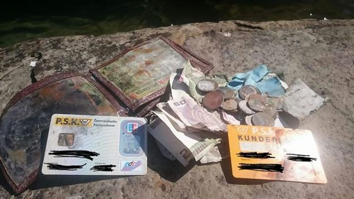 16. Este pescador tirou sua velha carteira da água depois de deixá-la cair em um lago 20 anos antes