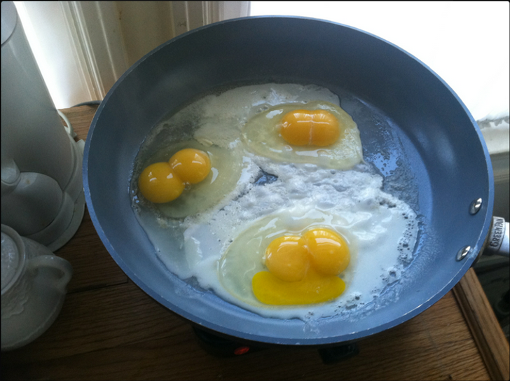 8. “Quebrei 3 ovos, um por um, e todos tinham ’gêmeos’. As possibilidades de que isso aconteça são de 0.003%”