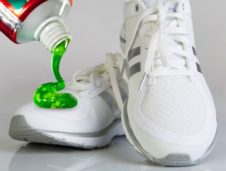 Você pode limpar seus calçados esportivos que costumavam ser brancos com um pouco de creme dental e uma escova de dentes velha, que você não usa mais. Depois de aplicar a pasta de dentes nos sapatos, deixe repousar por dez minutos. Em seguida, limpe com um pano úmido.