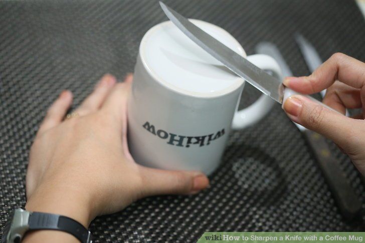 A maioria das xícaras de cerâmica tem uma borda áspera ou sem brilho ao redor da parte inferior que é perfeita para afiar uma faca se a pessoa não tiver um afiador adequado. Tudo que você precisa fazer é colocar a lâmina contra o fundo áspero do copo e deslizar para trás e para frente.