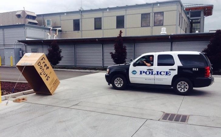 17. Policiais americanos amam donuts. Pegadinha pra eles
