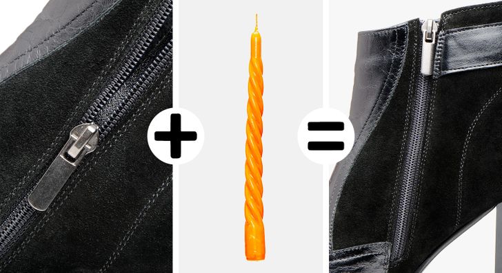 Se tiver um zíper emperrado em suas botas, este método é para você: esfregue as engrenagens com a cera de uma vela e o fecho vai se deslocar sem problemas.