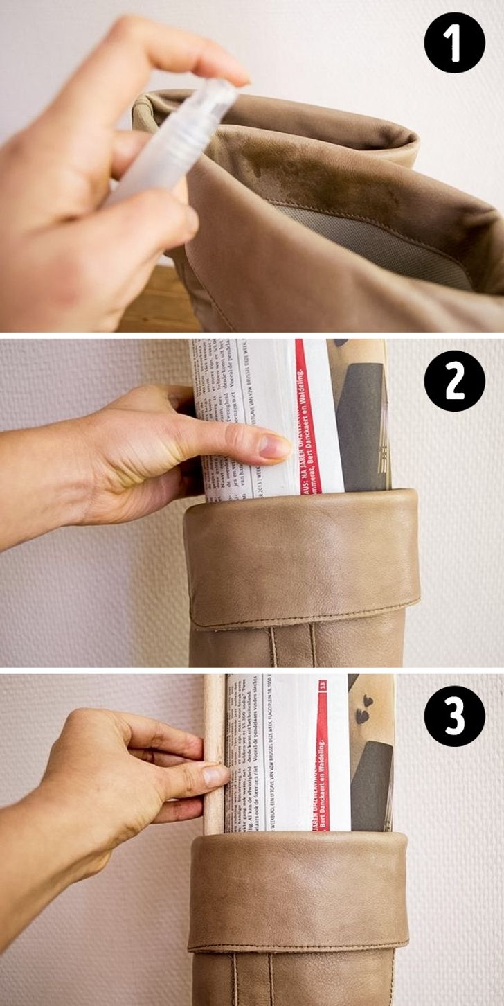 É um método estranho, mas eficiente. Você pode vê-lo aqui e realmente funciona. Além disso, seus sapatos ficarão com um ótimo aroma.
