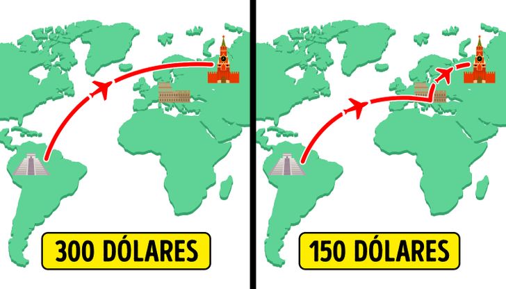 Por exemplo, você precisa ir a Moscou. Procuramos por passagens Rio de Janeiro — Moscou e vemos um preço. Adicionamos um voo para Londres. E vemos que o preço do bilhete “Rio de Janeiro — Moscou — Londres” é muito menor. Compramos esta passagem e descemos em Moscou. Às vezes a diferença no preço chega a 50%. Ou seja, comprar a passagem A — B — C e descer no ponto B será mais barato do que comprar a mesma passagem A — B.