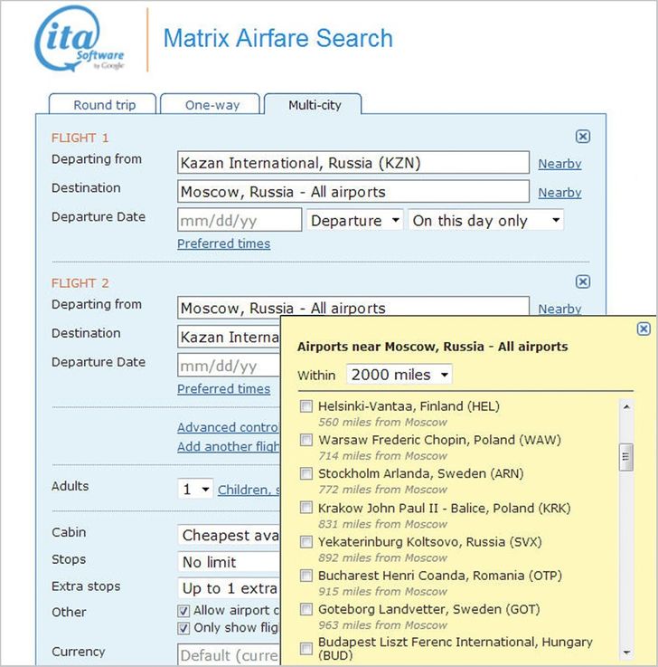 Matrix é útil porque você pode procurar um voo adicional conveniente, numa região com um raio de até 2000 milhas, e comparar centenas de ofertas ao mesmo tempo.