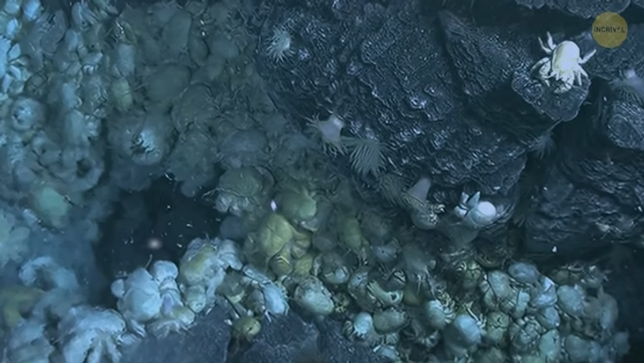 Depois, há os caranguejos-yeti que vivem no fundo do Mar Antártico. O Oceano Antártico é um ambiente de água fria, mas os caranguejos são mais adaptados nas águas mais quentes, então eles se reúnem em torno do calor produzido pelas aberturas vulcânicas e obtêm o calor e a comida necessários. Você pode encontrá-los em grandes pilhas, uma em cima da outra, literalmente preenchendo o espaço nas aberturas dos respiradouros.