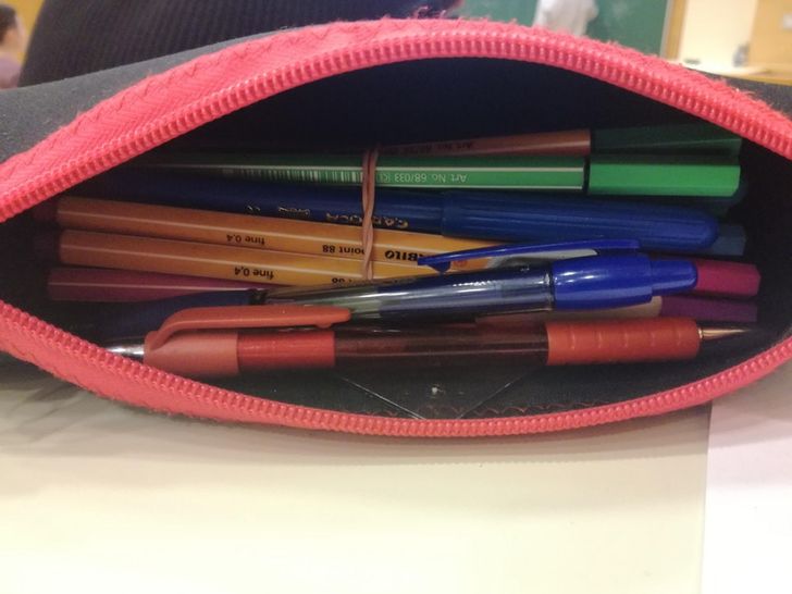 Enrole as canetas e lápis que você pouco usa com um elástico. Desta forma, você será capaz de encontrar os que são necessários mais rapidamente.