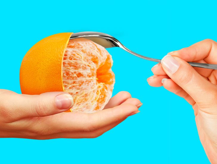 Você precisará de uma faca afiada e uma colher rasa. Na parte superior e inferior da laranja, corte as partes densas da pele, fazendo uma incisão longitudinal com a faca, conectando o topo com a base da fruta. A profundidade do corte deve ser mínima: não precisa atingir a polpa. Insira a colher debaixo da casca e comece a separá-la suavemente dos segmentos. Depois de tentar várias vezes, você vai poder descascar a laranja como um profissional.