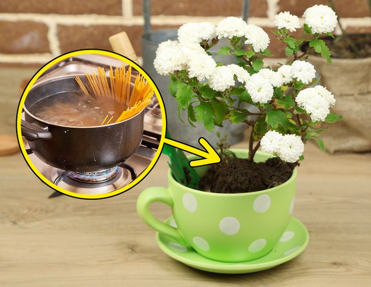 Você pode regar as flores com a água fria do cozimento de batatas ou massas. Os nutrientes contidos no líquido fazem muito bem para as plantas.