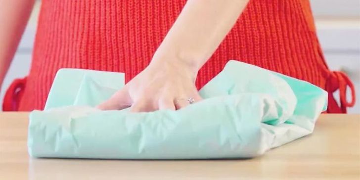 Para que suas roupas não amassem durante uma viagem, embrulhe-as com papel crepom e dobre como costuma fazer. Você pode encontrar mais maneiras de fazê-lo aqui.