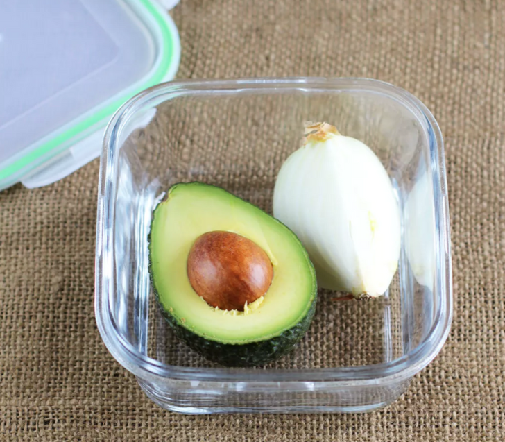 Coloque o abacate numa tigela com um pedaço de cebola. O autor do método afirma que não afetará o cheiro e o sabor do outro produto, mas preservará sua frescura.