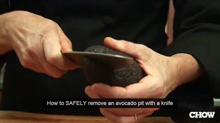 Use a faca mais afiada que tiver, mas tenha muito cuidado. A maneira mais segura é colocar o abacate em uma tábua de corte.