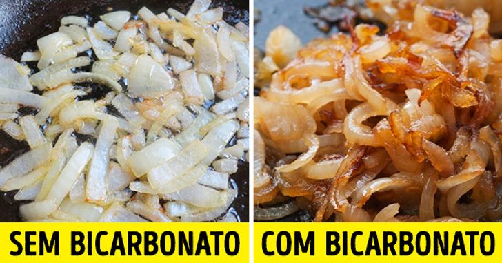 Ao fritar cebola, quando ela começar a dourar, adicione 1/2 ou 1 colher de chá de bicarbonato de sódio por quilo. A cebola ficará, literalmente diante de seus olhos, muito caramelizada, e sem queimar!