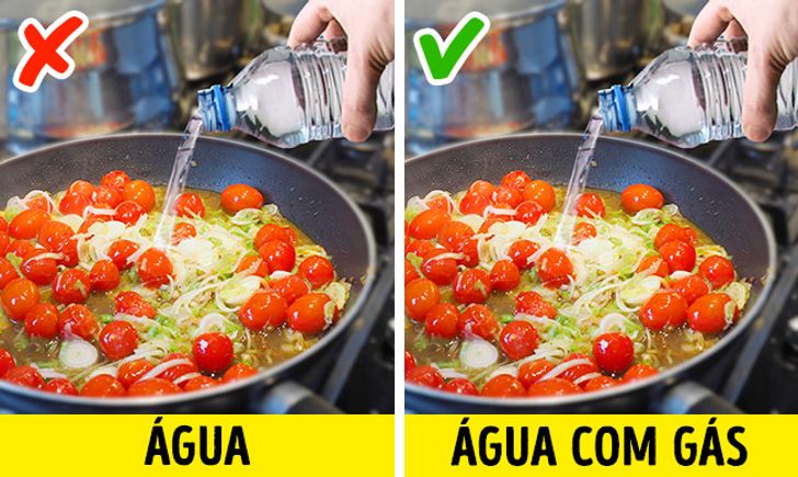 Quando cozinhar legumes, substitua a água habitual por uma que seja mineral e com gás. O bicarbonato de sódio presente nela destruirá as fibras vegetais, acelerando o cozimento e tornando-os muito mais macios e coloridos.